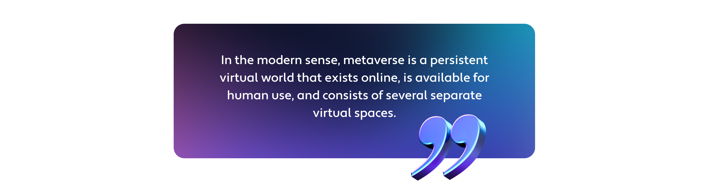 For example, after purchasing property or land in such a virtual world, you become its legal owner, and no one can take it away from you. When you interact with other people, you don't do it to complete quests together but for the same reasons you would do it in real life. At their core, metaverses are merely other forms of existence of human society with the same, if not wider, set of possibilities as the non-virtual world provides.